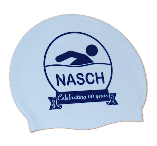 Celebrate 60 years of NASCH with this limited-edition swim cap. Featuring a clean white design and our signature NASCH logo on the side, it’s perfect for marking this special milestone in style. Made from high-quality, comfortable, and durable material – ideal for both training and events.